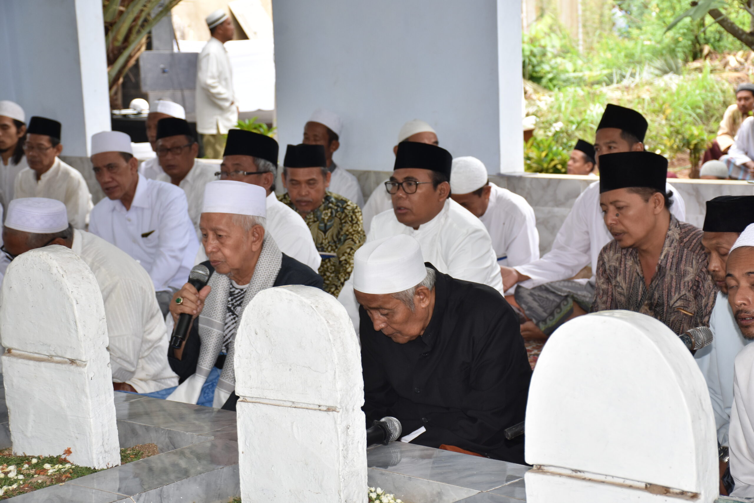 KAJEN – Bupati Pekalongan KH. Asip Kholbihi, SH.,M.Si bersama para Habib, para Kyai Kabupaten Pekalongan beserta ratusan jamaah menghadiri Haul Almarhum Almaghfurlahum KH. Hasan Bulqin bin Thoha dan Sesepuh Desa Surobayan Kecamatan Wonopringgo, di pemakaman umum Desa Surobayan, Jumat (24/1/2020) pagi.